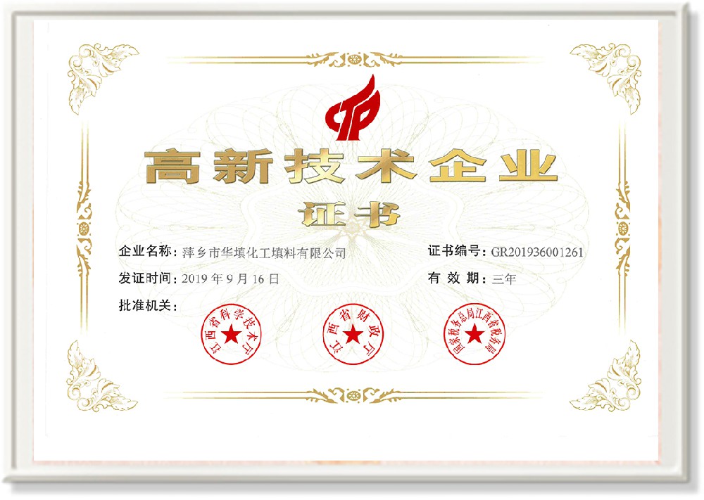 萍鄉市華填化工填料有限公司,位于320國道、109國道、浙贛鐵路、昌金高速公路貫穿其中,交通便利,是江西西部一顆燦爛明珠,創建于20世紀70年代初期,是中國石油天然氣股份有限公司“能源一號網”會員企業、中國石化物資采購電子商務網絡和中國海洋石油總公司采辦業務系統成員單位,是上海大學江西材料基因組工程產業研究院工業陶瓷產業創新聯盟基地,且通過ISO9001:2015質量管理體系、ISO14001:2015環境管理體系、ISO45001:2018職業健康安全管理體系認證的化工填料生產企業。公司擁有陶瓷、塑料、金屬填料、催化劑、活性氧化鋁、分子篩等產品生產線,現有固定資產3616萬元,占地面積3.8萬平方米。公司具有悠久的生產歷史、雄厚的技術力量和先進的生產工藝設備,可生產工業瓷球(支撐劑)、陶瓷、金屬、塑料質的規整、散堆化工填料及分子篩、催化劑、生化濾料、活性氧化鋁、石化助劑、活性炭、環保材料、耐火材料等系列的200多種規格型號產品。
